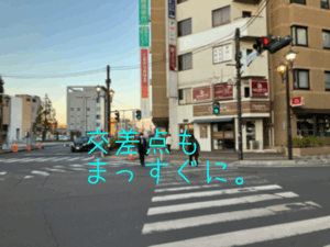 1つ目の交差点も、そのまま真っ直ぐに進みます。